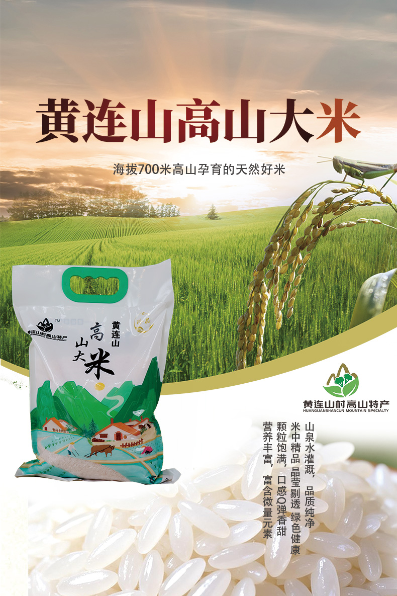 喝着山泉水长大的黄连山高山大米主产自于平均海拔700余米的南丰县三溪乡黄连山村。清新的空气和独特的高山小气候哺育了黄连山高山大米优良的品质和独特的口感。黄连山高山为国壹计证检测机构检網劲且开胃健牌、入回香,不论悉、意、熬粥等都具备非常高的营养和板为丰富的微量元素丰富。适合各种年龄段的家人食用。